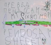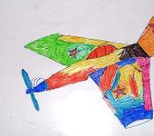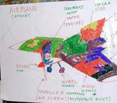 Писал сын на своем плакате. Я я не рисунке дочки писал типа справочник. Контур самолета по просьбе дочери я нарисаовал - она красить любит. А писать не умеет ни на каком языке, ну буквы только.