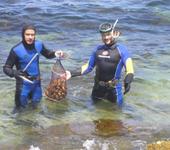 А варежки одна пара на двоих - это не от холода, это чтобы крабов ловить. Можно, конечно, и без них, но дольше. Если в баллонах- то ерунда, а если просто на дыхалке с трубкой- времени маловато. Поэтому варежкой цап его - все разговоры!