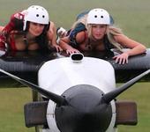 хочу немного порадовать общественность.Короче - женщина и ( в, на, под - нужное подчеркнуть) самолет.