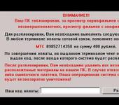 Было дело, словил на какимно из видеосайтов, точнее жена захотела кино поставить, а там предложили установить кодек, типа его не хватает для просмотра. В результате на весь экран окно темно-красного цвета с надписью, что-то типа: вы добровольно установили какую-то программу, которая закрыла выход в инет и заблокировала антивирус, не пытайтесь ее обмануть иначе компу п*ц, отправьте смс , короче дальше ничего нового не скажу, хотел снести систему и постановить с образа через акронис, но она и его заблокировала.