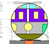у вертОлёта ещё хвост есть (а вам для шаровидного дома нужно два винта разнонаправленных) и он наклоняётся при движении (а вам надо ещё двигатель для горизонтального перемещения) а если нет - то рассыпется вся посуда, упадёт монитор … курево опятьже может посыпаться что для домашних не полезно ни капли… плюс к тому у вертолёта небольшое время полёта в основном … и кабину вы в своём чертеже или не обозначили или проигнорировали …