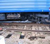 бывает и электричка на стрелках раскорячивается - передние вагоны влево, задние вправо, а средние не знают куда им надо и мечутся туды сюды, с лёгкостью перепрыгивая через рельсы и сдвигая полотно пути в грунте…