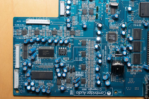 Но когда я стал смотреть сигнал на входах 14,15 микросхемы CS42518, то у меня такой вой стал появляться, что я сначала подумал, что спалил свой “тестер”. Сейчас на этих входах никакой музыки не прослушивается, только ужасный вой и все. Боюсь, как бы окончательно не поломать “тестер”. Оба бумбокса отказались нормально работать, теперь я использую звуковые карты ПК с линейным выходом. На одной карте линейный вход перестал работать на второй день, видимо ткнул не в ту дорожку и он сгорел. Пока вторая звуковая карта работает. 😃