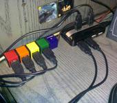 А Passthrough потому, что их заряжать гораздо удобнее и можно курить во время зарядки. Те, которые лежат справа без passthrough - автоматы без кнопок. Для зарядки passthrough у меня есть пара специальных USB-хабов, подсоединенных напрямую к отдельному компьютерному БП, от которого много еще всего питается на столе.