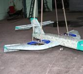на носу тянущий двигатель… Расчетный взлетный вес 10-12 кг. Тянущий двигатель бензиновый, чтобы была возможность вертикального взлета необходимо винт сделать с изменяемым шагом… Необходимо подобрать двигатель, систему изменения шага… расчитать винты в крыльях для подьема…