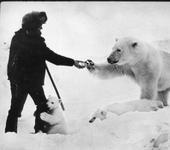 Медведица, родившая медвежат, не смогла добывать достаточное количество пищи, чтобы их выкармливать. Пограничники приносили ей сгущенное молоко в банках.