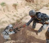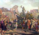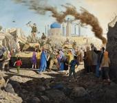 Картина американского художника Sandow Birk “The Liberation of Baghdad” и картина В.Волкова “Освобождение Минска 3 июля 1944 года”. Найдите три отличия.