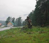 На Алтае у дороги стоит лесовичёк, охраняет природу. В динамике из машины он смотрится просто как живой.