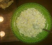 2 Roix, как вариант: кальмары так же (только при варке воду сильно посолить), лук тоже полукольцами - ошпарить или замариновать уксусом (второе лучше), натереть большой кусок сыра, всё перемешать, заправить майонезом.