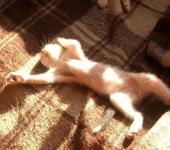 Он дожил до 19 лет и даже в последнее свое лето был самым-самым в той деревне. Остальные звери его очень уважали. Я как-то утром вдруг услышал ТОПОТ КОТОВ. Выглядываю и вижу, что пробежали два кота, а за ними мой Уголек. Уголек потом возвращается и тяжело дышит - трудно уже молодежь гонять