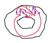 Извиняюсь за низкий художественный уровень сего опуса, надеюсь, что можно будет понять смысл. Изображена баранка, а на ней- требуемая картинка. Зеленые точки- вершины графа (бывшие квадратики и кружки), красные-соединительные линии, синие-их номера (всего 9 линий)