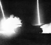 Вот как выглядела ночная атака Т-34 во второй половине войны: для освещения использовали сигнальные ракеты.