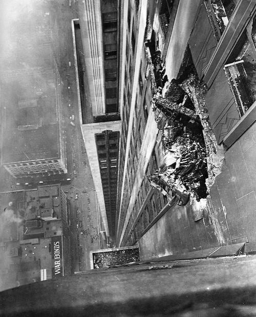 1945 год. След от бомбардировщика В-25, врезавшегося в Эмпайр-стейт-билдинг.