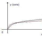 Увеличим скорость и пружинка растянется еще, но сила растягивающая пружинку будет непропорциональьна росту скорости, т.е. она не линейна, и график будет иметь скорее всего параболический вид.