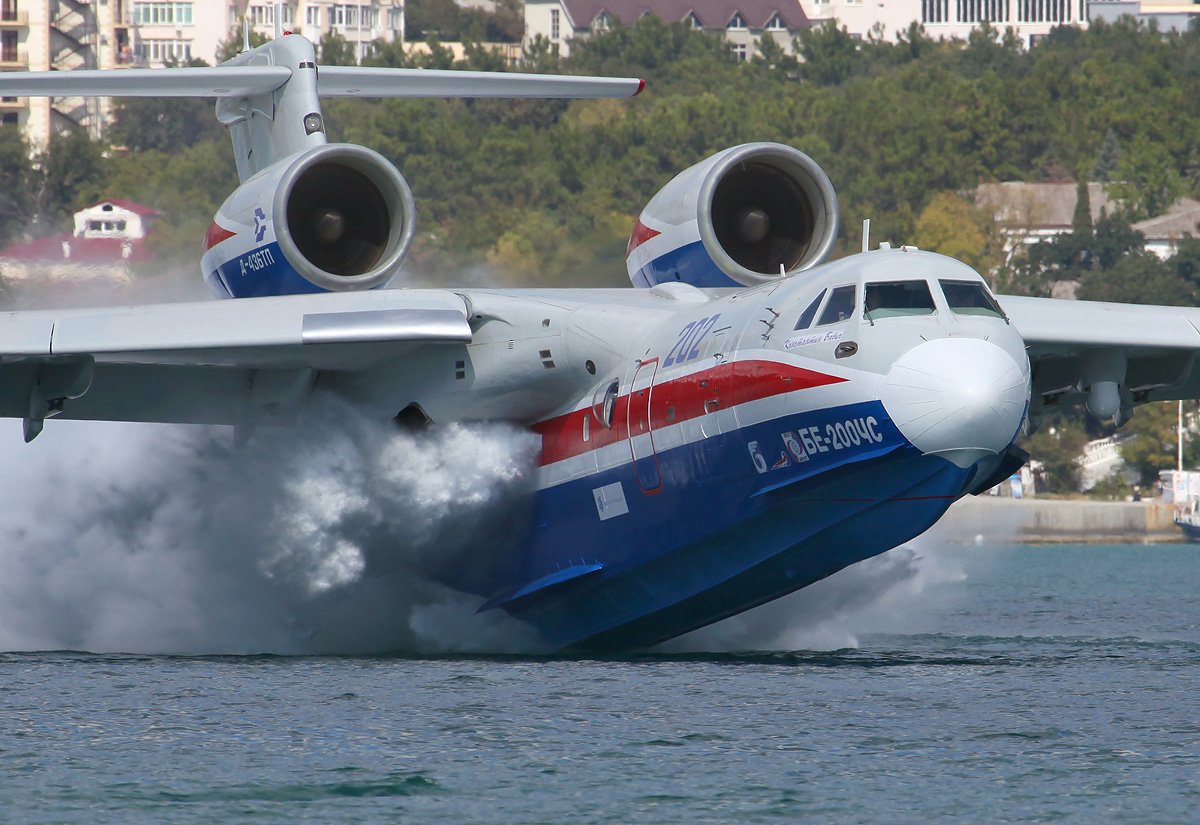 На БЕ-200 защита двигателя от прямого попадая воды ограничивается не только высотой, но и своим расположением, при котором крыло прикрывает ВУ двигателя.