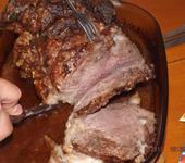 Через час - полтора (зависит от размера куска ), снимаем крышку , поливаем соком с емкости .