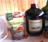 Поливаем все енто молодым сухим красным вином и даем постоять в прохладном месте ( холодильник ) примерно час.
