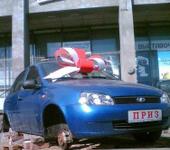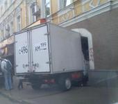 Бычок. Въехал с грузом под арку, вниз во двор; там разгрузился, а на выезде (аккурат на перегибе) уперся кузовом в стенки. Снёс кабели телефонные и силовые, которые в коробе по верху арки шли. В здании кроме всего прочего небольшая АТС была, несколько дней всё это дело восстанавливали.