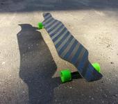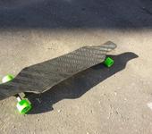 Старшего сына посетила идея обзавестись лонгбордом , однако решили не покупать готовый, а сделать свой с расчетом на мелкосериное производство в ближайшем будущем. Вот что получилось. В основе - два слоя 4мм фанеры проклеенные между собой слоем углеткани на эпоксидке . Все это зажимается в стапеле для придания доске всех необходимых изгибов. После стапеля верх доски обклеен двумя слоями карбона, а низ - тремя. Кроме этого на верхней поверхности поставили самоклеющиеся противоскользящие полоски . В итоге получили доску с полной жесткостью на скручивание и хорошей продольной упругостью ( выдерживает дядек до 110кг). Вес самой дэки без подвесок - 2200гр. Длина -1170мм и ширина - 240мм.