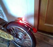 Ну вот и поехало.Немного обкатал.Скорость 35 км. Вес 26кг. Запас хода пока не знаю акум стоял модельный ли.-по.5 а.ч. 45 в. Проехал на нем 11 км.Музыка играет, бардачек есть, свет светит и габариты и дальний и тормозит хорошо.Тормоза механника.