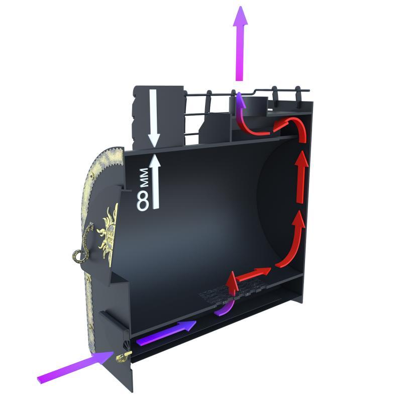 Тут есть одна хитрая заслонка, которая открывает ход для дыма напрямую…до прогрева (люди пишут, что это занимает примерно 15-20 минут), а потом заслонка закрывается и дальше по схеме вниз-вверх…