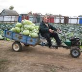 Я не знаю что делать с этой телегой с капустой. телега не выдерживает,гнётся основной центральный швеллер.Её предел по мануалу- 250 кг.Как правило по объёму кочнов больше и не влезало.а в этом году тот же объём - все 400 кг!Капуста как никогда словно свинцовая.Каждый кочан 8-9 кг! и конца края этому нет,ещё 10 соток срезать и вывозить!Успеть бы до ноябрьских метелей…