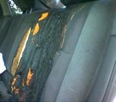 Через час вернулся к машине с мыслями поменять на заряднике акк., открываю заднюю дверь и в лицо мне вырывается густое облако дыма и жар. На улице темно, машина тонированная и вся в дыму ничего не видать, моментально вынимаю зарядник из прикуривателя, открытого огня к счастю уже небыло т.к. он задохнулся в собственном дыму (слава Богу, а то сгорела бы вся машина).