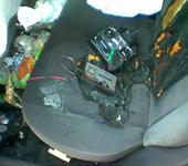 Через час вернулся к машине с мыслями поменять на заряднике акк., открываю заднюю дверь и в лицо мне вырывается густое облако дыма и жар. На улице темно, машина тонированная и вся в дыму ничего не видать, моментально вынимаю зарядник из прикуривателя, открытого огня к счастю уже небыло т.к. он задохнулся в собственном дыму (слава Богу, а то сгорела бы вся машина).