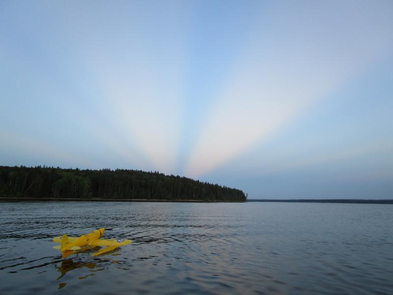На самом деле, приглядевшись, можно было понять, что это перекрывающие все небо и “уходящие в перспективу” параллельные лучи “загоризонтного” солнца, которое светит сквозь облака на западе.