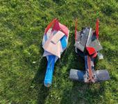 Плюс наконец-то восстановил первую, установив на полусгоревшую мотораму здоровенный двигатель с винтом от разбитого коптера. Выглядит теперь очень страшно.