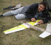 Изготовлен из фанеры 4 мм и потолочки. Размах - 1 метр