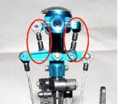 У меня эта качалка пластмассовая стоит. И подшипники в ней стоят только там где флайбар проходит. Если эту качалку сильно притянуть к хабу двумя винтиками, то флайбар перестает качаться. А на той, что на картинке я смотрю стоят уже подшипники. Ее уже можно затянуть.