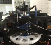 В ESP механизм передачи движения с качалок сервомашинок на рычаги, расположенные на контрольном валу (control shaft) реализованы по принципу параллелограмма. Геометрия не позволит вам на качалках поставить шары ближе к центру, поскольку получившаяся трапеция не сможет двигаться вообще. Если хочется поставить шары ближе к центру, то и на рычаге придется ставить ближе к оси. Лично я не очень понимаю смысла этого действия. У меня на ESP стоит обычная FBL голова (которая не DFC). Все тяги на своих штатных местах, вроде летает нормально, хотя мне до серьезного 3D еще далеко, но тик-таки, флипы и ролы никаких проблем не вызывают.