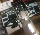С промежуточной шестерни переднего кейса снимаем кончику, она сидит на проточках, которые выступают за номинальный диаметр вала в 5мм - протачиваем вал четко на 5мм чтобы шпуля сидела плотно. Делаем 2 метки для посадки шпули двумя бонками.