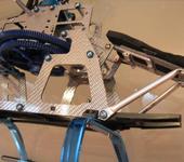 Так. Ну выглядит хорошо. Однако, тяжелая площадка с батарейкой под наклоном ложится на маленькую, под которой закреплен регулятор (тоже не совсем легкий). А вся сия конструкция не прогибается ли дальше вниз? Как обеспечивается жесткость треугольника “Батарейка-регуль-рама”? Они что, только резиночкой стянуты?
