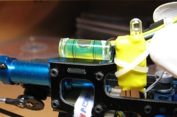 Выровнять легко - на полностью собранном вертолете выставить шаги в ноль, поставить вертушку боком и, вращая горизонтально расположенный флайбар, по очереди направлять серволопатки на себя - сразу видно параллельно земле стоят или нет. Можно еще вот таким уровнем пользоваться, положив его на серволопатку (это трубочка из раздраконенного китайского строительного уровня, купленного за 30 рублей):