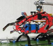 Все основные узлы, геометрические и присоединительные размеры остались как на оригинальном Е Рапторе. Использованы блоки подшипников основного вала от Тирекса. Корпус крепления хвостовой балки и направляющая свошплаты самодельные из плексигласа, направляющие хвостовой тяги, блок роликов ремня и киль из акрила. Все “самодельные” детали вырезаны на раскрошенном станке ЧПУ и “лазере”. Всё делалась из того материала который был под рукой.
