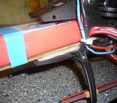 Вот фото крепления акка. Отлично держится в любых положениях, не смещается, + легко меняется. Как-то упал (в дерево вмочился) так что акк слетел совсем ( разъемы отсоединились ), но тогда и рама через капот вышла наружу и площадку загнуло почти в прямол угол, но акк цел остался, слегка загнулся.