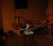 “Внутри лопасти смонтирован NiMH аккумулятор и три светодиода, красного и желтого цвета, что позволяет определить положение модели в темное время суток, даже если Вы демонстрируете 3D пилотаж.”