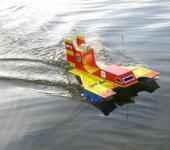 Вопросы… Хочу построить такую модель. В наличии есть двигатель, характеристик точно не помню, надо посмотреть, но тягу выдаёт примерно 700гр. На сколько мне увеличить корпус? Эксплуатировать собираюсь на воде. Как показывает себя плоское дно на воде? Не слишком ли сильно заносит? Может нужны какие-то реданы? И наверное забегая вперёд… Из каких материалов сделана стойка двигателя и перо руля? Каким образом сделана объёмная полукруглая отбортовка?
