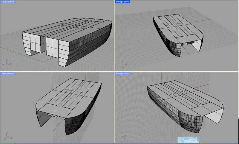 - загрузил проект в Rhino, там “разрезал” добавил “палубу”