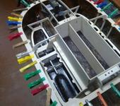 Как я понял, ты в начале его делал в каком то САПР типа Солида, уж больно каркас или шпангоуты чётко подогнаны (да и 3 фото оттуда). Они кстати из пластика? На чём или где нарезал, или это чудесная ручная работа?