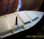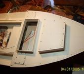 …Уважаемый КРАСНОСЛАВИЧ! Судя по форуму Вы - ветеран, но Вы ошиблись! Катеру не только не семь лет…но он даже еще не доделан до конца…и большой воды еще не видел…он просто пока еще не покрашен…Теперь что касается Ваших вопросов: Скос вполне премлем…воздух из-под днища не хватает…Угол скоса от вертикали - 52 градуса. Просто может ракурс для фото не правильно выбран. Кормушки поворачиваются двумя сервиками (по одному на каждую), но не вверх дном, а становяться вертикально. Двигатель от шуруповерта “Интерскол” на 14,4 В, от него же и регулятор - приводится в действие сервиком, но надо из кнопки предварительно удалить пружинку. Фото приложу…Транзистор поставлен на рубашку с водяным охлаждением, у двигателя тоже есть рубашка охлаждения. Поскольку работа данного судна в основном на малых ходах, для обеспечения циркуляции воды установлен микронасосик центробежный. Винт 40мм, а вот шага не знаю…