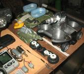 Следущее фото. Переделанный транспортер для рыбалки, датчик смарт спереди на пеноплене что типа на гибкой сцепке по уровню воды сам всплывает - сзади на сцепке вообще не понравилось. Двигатель около спичечного коробка - это двигатель с колес - ток холостого хода 0,3 - ток полной остановки 3А - хотел спросить подойдет таких 2 штуки для кораблика кг на 5 для рыбалки - ну примерно хоть?