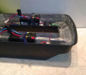 - Эхолот переделал по инструкции найденной в Гугле. Просто вынес плату электроники в отдельный бокс, переделал питание на более удобное и присобачил внешнюю антену… Датчик эхолота вклеил в корпус.