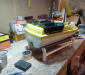 Конструкторам, кто хочет поднять скорость своего кораблика, не увеличивая мощность привода, может подумать о таком корпусе, т.е. две половинки по 70-80 см, задняя с элементами питания и мотором, передняя с бункерами, при транспортировке габарит остается, на водоеме удваивается.