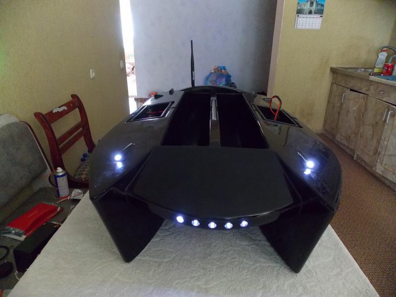 2 боковых поплавка можно сделать пониже - на них и ставить, я все хотел сделать но побоялся, хотя возможно и зря т.к доделаный кораблик стал весить почти на 1кг больше - фиг его знает что я туда насувал 😃 , но не доделанный он и ездил на порядок лучше, теперь конечно вся часть поплавков в воде - сильно большое сопротивление… Опять же если переделать то обнаружатся другие минусы - это наверное нужно рассчитывать все, и не просто на тетрадном листке 😃