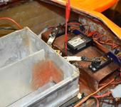 Только в эту субботу доделал кораблик. Испытать пока не удалось в связи с погодными условиями. А так в принципе все видно на фото. Потребляет 1,7-1,8 А на полном ходу. В дейвуды залил смазку для шрусов. Защиту движков сделал из канализационной трубы диаметром 75 мм. Из недостатков только его вес, тяжеловат получился, но уже ничего не поделать.