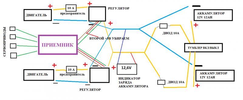 парни может ктото на листке бумаге начертить схему и скинуть в личку из 2 акков 2 моторов и 2 регулей как соеденить заранее спасибо просто все у меня уперлось в схему хочется дособрать и проверить.