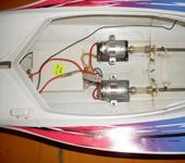 В посте 10 на средней фотке видно что валы не очень соосны (покрайней мере у правого мотора точно) отсюда и разность скорости моторов и звука.Попробуй подвигать крепление мотора, сделай подкладочки под зажим мотора а лучше замени его на крылышко в виде бабочки из дюраля тогда он будет еще и охлаждать мотор. Вообще чем сооснее сделаеш валы мот и винта тем меньше будут потери а значит будешь дольше, быстрее и тише (по звуку) ходить.Аккумы можешь использовать от авто (вроде занимаешся?) на 6-7 банок доступной емкости, понятно что более емкие дольше будут бегать, но не переусердствуй с напряжением чтоб не спалить моторы. Да и про смазку не забывай -это важно!